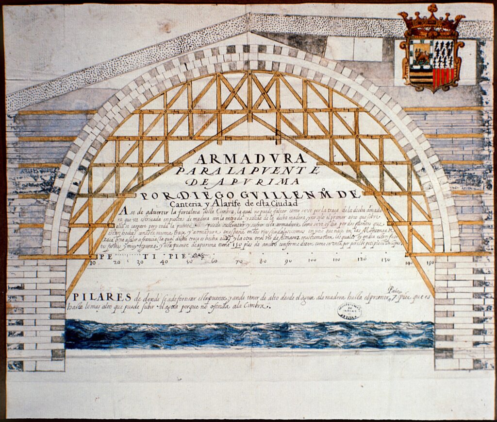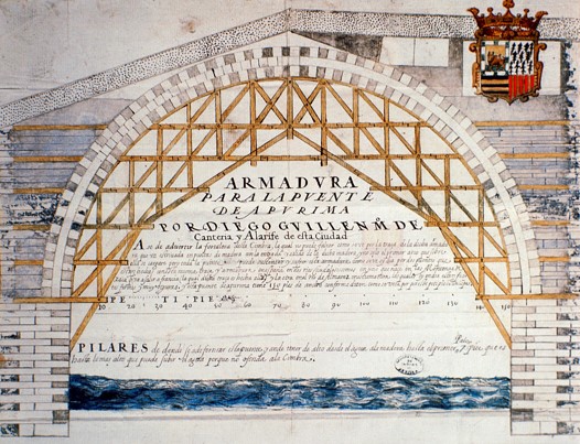 En el Archivo General de Indias se custodia este valioso documento del maestro de obras Diego Guillén, renombrado alarife residente en la capital del reino en esos años de principios del siglo XVII. Junto a otros especialistas estuvo en Lima a cargo de diversas obras. El puente Pachachaca fue empezado a construir en 1654.