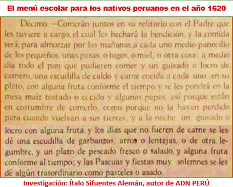 Este es el menú escolar que en 1620 servían a los caciques que eran alumnos del colegio jesuita de Lima