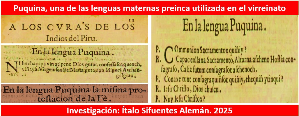 El obispo peruano Luis Jerónimo de Oré (1554-1630), integrante de la orden franciscana, publicó en Nápoles su obra multilingüe titulada “Rituale, seu manuale peruanum”, a través de la cual se puede conocer la vigencia de la antigua lengua materna puquina, propia de las poblaciones que habitaron el rico Lago Titicaca, y que luego se expandieron hacia diversos valles que forman parte de Arequipa.