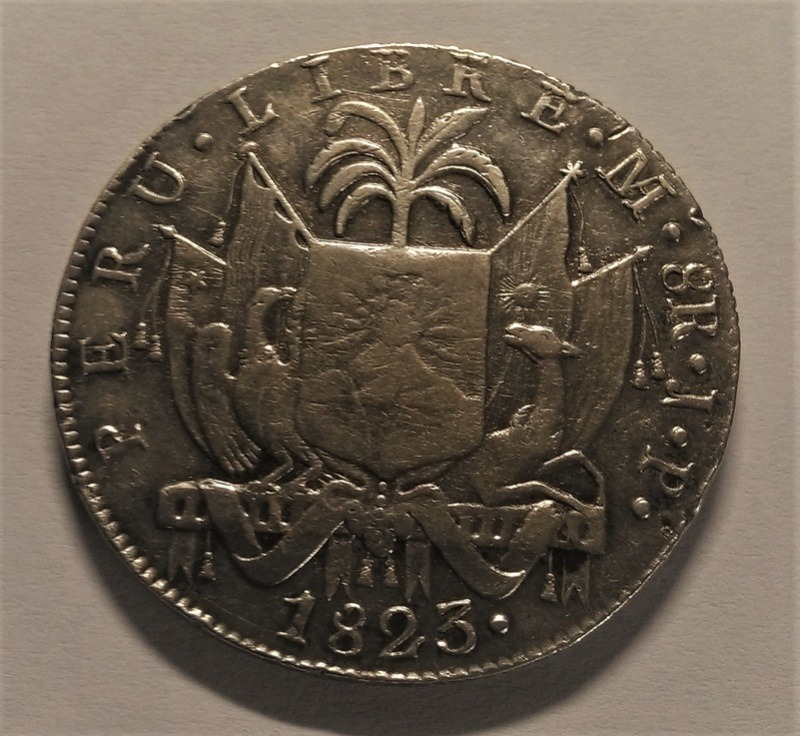 En 1820, el 21 de octubre, José de San Martín oficializó el uso del primer Escudo Nacional de Perú a través de un decreto firmado en Pisco en esa fecha. Esa creación suya, estuvo vigente hasta el 25 de febrero de 1825, fecha en que fue creado el segundo y definitivo escudo nacional por el médico y diputado peruano José Gregorio Paredes. Como se sabe, San Martín se fue de Perú el 20 de setiembre de 1822 (aun así, en 1823, acuñaron y circularon monedas con ese escudo).